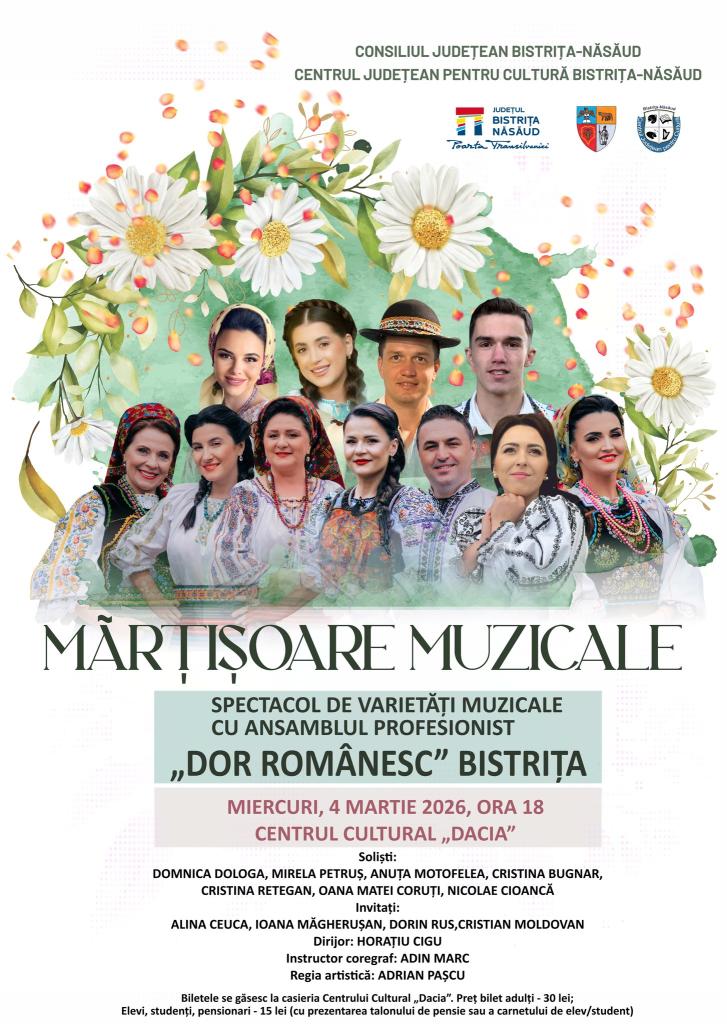 Consiliul Județean Bistrița-Năsăud, Biblioteca Județeană „George Coșbuc" Bistrița-Năsăud organizează, în data de 26 februarie 2026, cea de-a V-a Ediție a Târgului „mARTișoare la Bibliotecă". ...