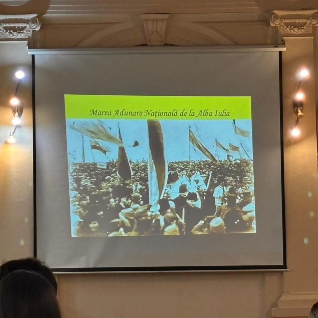 În Aula Colegiului Național „George Coșbuc” Năsăud s-a desfășurat un eveniment special dedicat Zilei Naționale a României. Elevi și profesori au marcat această zi printr-un mic spectacol artistic și momente de reflecție asupra semnificației istorice a Marii Uniri. Atmosfera festivă, completată de prezentări captivante și interpretări emoționante, a reușit să transmită un puternic sentiment de mândrie și recunoștință pentru identitatea și valorile românești.
