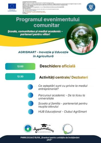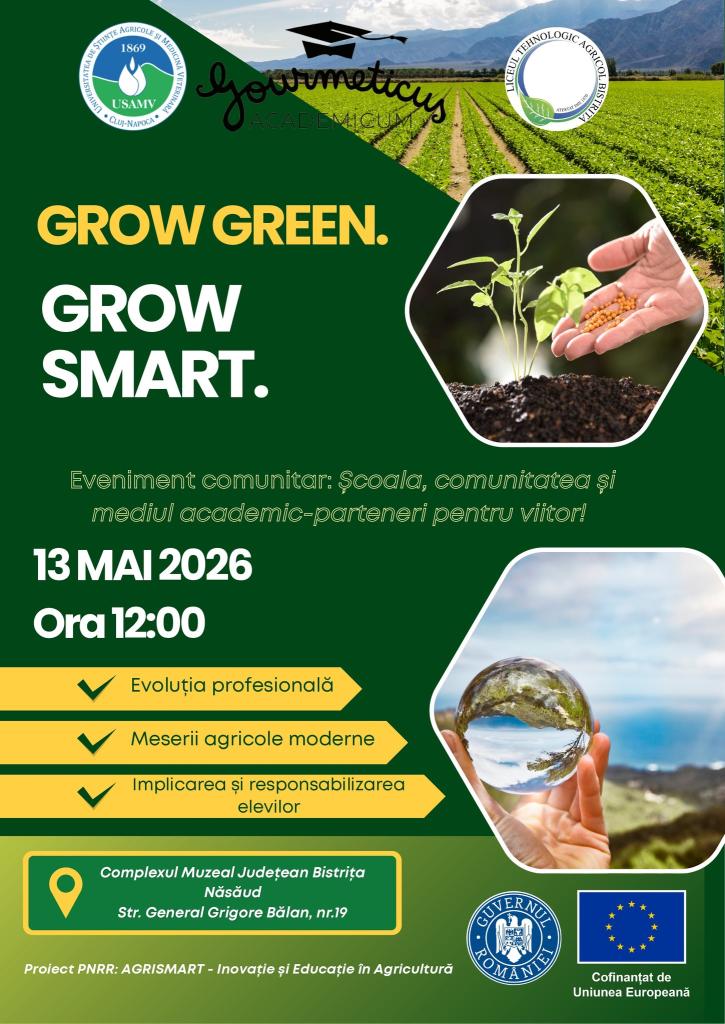 - USAMV Cluj-Napoca și Liceul Tehnologic Agricol Bistrița lansează HUB-ul Educațional ”Clubul AgriSmart”, în cadrul activităților de mentorat și tutorat- Proiectul PNRR ”AGRISMART – Inovare și Educație în Agricultură”