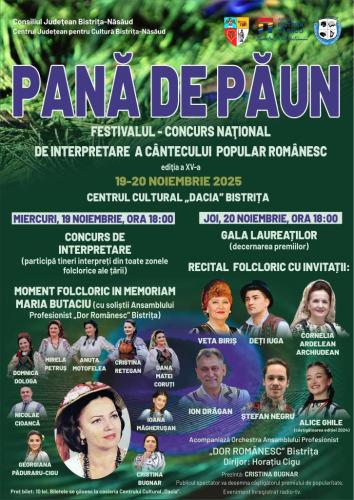 FESTIVALUL - CONCURS NAŢIONAL DE INTERPRETARE A CÂNTECULUI POPULAR ROMÂNESC „PANĂ DE PĂUN”, ediţia a XV-a