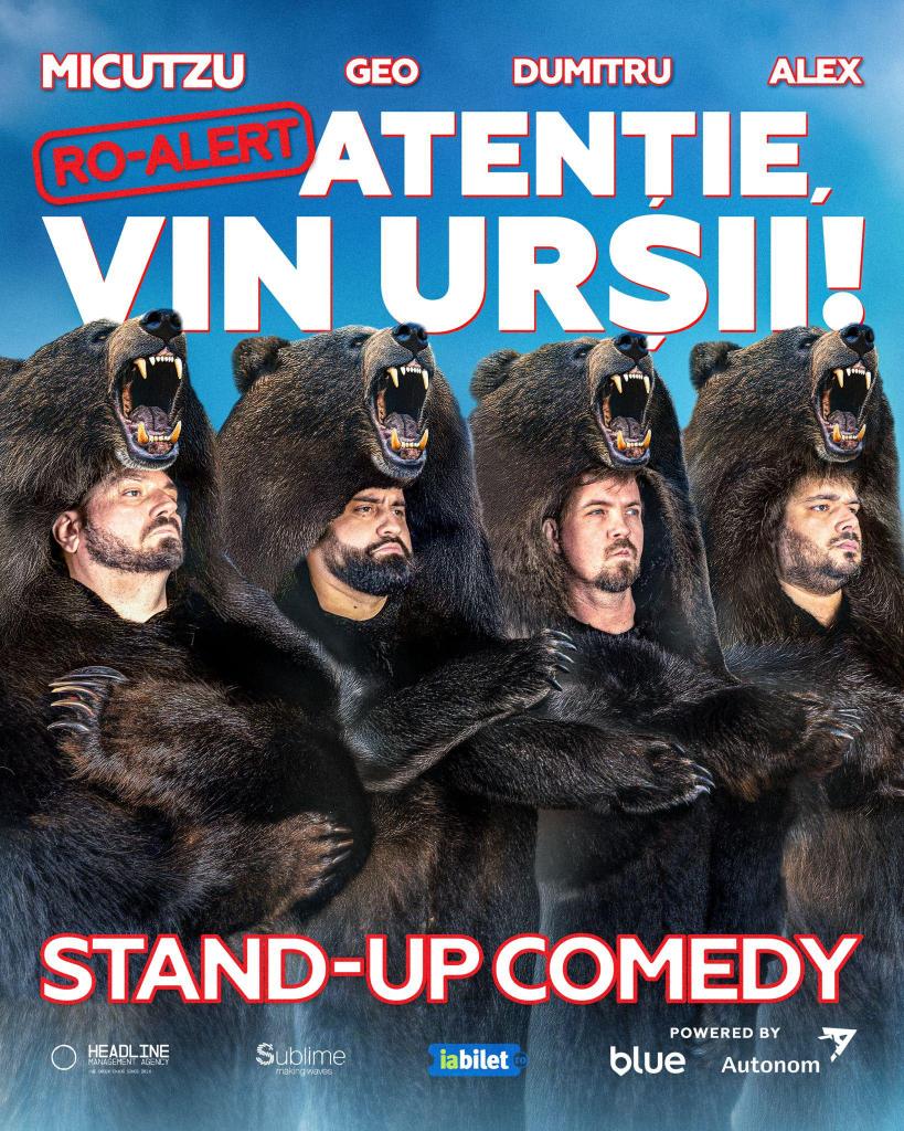 Spectacolul „RO-ALERT – Atenție, vin urșii!” este dedicat publicului care suportă umorul direct și tăios! Se anunță glume inspirate din viața de zi cu zi, realități românești spuse pe șleau și momente cu adevărat revelatoare.