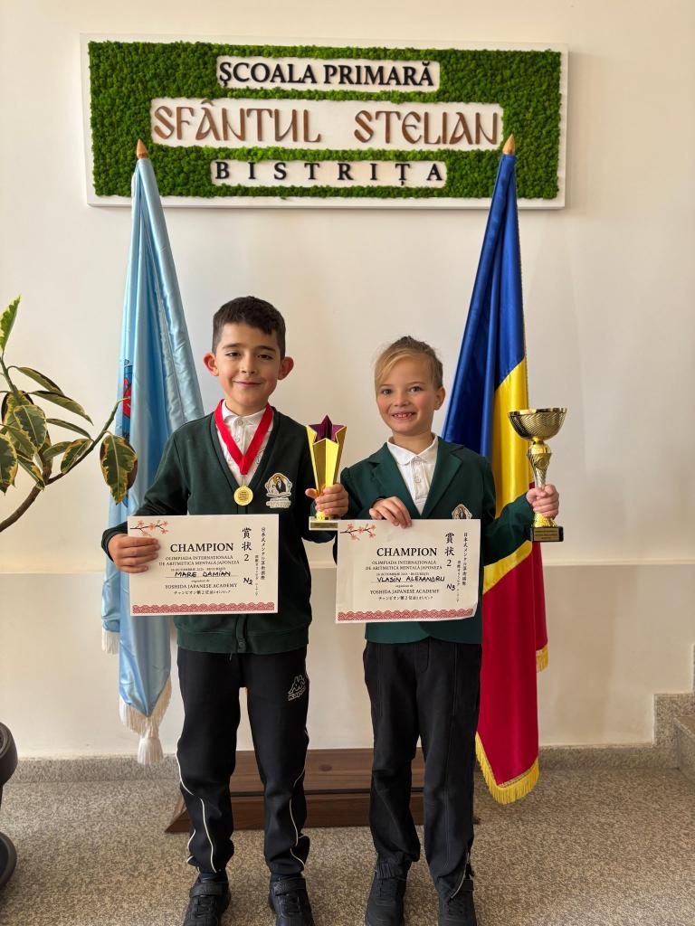 Vlașin Alexandru și Mare Damian, elevi în clasa a II-a la Școala Primară ,,Sfântul Stelian”, au obținut rezultate de excepție la Olimpiada Internațională de Aritmetică Mentală Japoneza Yoshida, desfășurată în data de 27 octombrie 2025, la București.