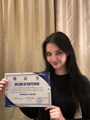 Andreea Simona Urzică, de la CNAM Bistrița, Premiul special la Olimpiada Națională de Limba Franceză