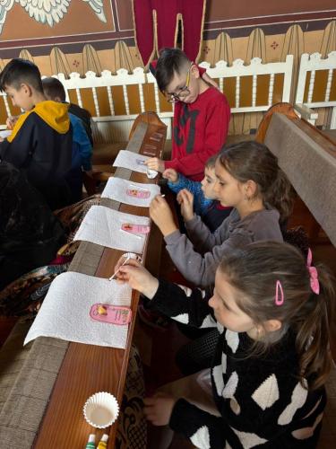 - Atelier la Parohia ortodoxă Dumbrăveni. 40 de copii au făcut felicitări handmade