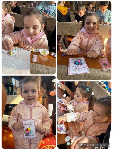 Cei mici au realizat șase modele diferite de mărțișoare, dar și brățări handmade, folosind tehnici variate și inspirate: • tehnica mozaicului decorativ