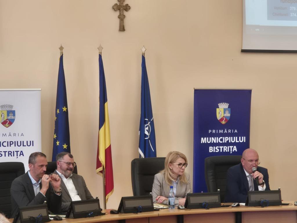 Primăria municipiului Bistriţa a organizat dezbaterea publică pe proiectul de buget al municipiului Bistrița pentru anul 2026. Primarul Gabriel Lazany, viceprimarii Ștefania Stere și Sorin Hangan, administratorul public Adrian Costea, directori executivi și angajați din aparatul de specialitate din cadrul Primăriei Bistrița au participat la prezentarea principalelor date din bugetul propus de municipalitate pentru acest an. Potrivit edilului Bistriței, continuitatea este cuvântul de ordine al acestui buget, pentru că se continua suysținerea investițiilor, a domeniilor precum sănătatea, cultura, sportul etc și tot ce adduce plus valoare în municipiul Bistrița.