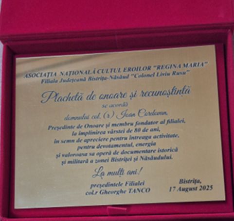 În data de 27.XI.2025 , la Cercul Militar al Garnizoanei Bistrița s-a derulat de către Filiala Județeană B.N. Cultul Eroilor „Colonel Liviu Rusu”o frumoasă activitate dedicată Zilei Naționale a României și de sărbătorire a col. (rtg.) Cordovan Ioan-președinte de onoare al Filialei Județene B.N. Cultul Eroilor „Colonel Liviu Rusu” și președinte executive al Asociației Astra Bârgău, cu prilejul împlinirii vârstei de 80 de ani de viață.