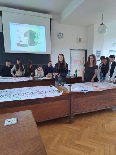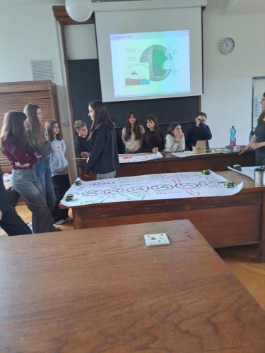 In prima zi a mobilităţii, participanţii au luat parte la un workshop de geografie pe tema amprentei de carbon, importantă pentru a înţelege impactul emisiilor de carbon în atmosferă şi care contribuie la înţelegerea şi reducerea schimbărilor climatice. In urma discuţiilor interactive despre tipurile de energie electrică obţinută din surse regenerabile (energie solară, eoliană, hidroelectrică, geotermală, biomasă), a fost întocmită o hartă online în funcţie de tipul predominant de energie din majoritatea ţărilor europene. S-a lucrat în echipe mixte (elevi cehi-greci-români-italieni), aceştia interacţionând şi prezentând produsele finite în limba engleză. Un alt workshop interactiv la care elevii şi profesorii bistriţeni au luat parte a fost cel pe tema schimbărilor climatice, unde, plecându-se de la un joculeţ despre vreme vs climă, s-au dezbătut tipurile de interacţiune dintre elementele componente ale sistemului climatic şi cauzele schimbărilor climatice, iar apoi a fost prezentat şi ilustrat efectul de seră, respectiv fenomenul prin care atmosfera Pământului reţine căldura exact la fel precum o seră menţine căldura în interior.