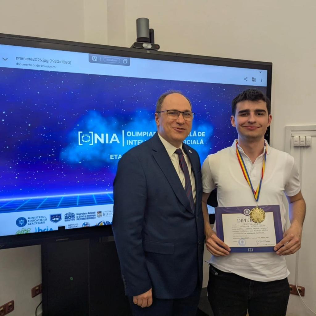 Ciprian Iulian Căldărea, pregătit de prof. coord. Strugar Simion, a fost distins cu Medalie de bronz și la etapa națională a competiției de Inteligență Artificială ROAI, desfășurată în perioada 6–9 aprilie 2026, la secțiunea XI–XII.