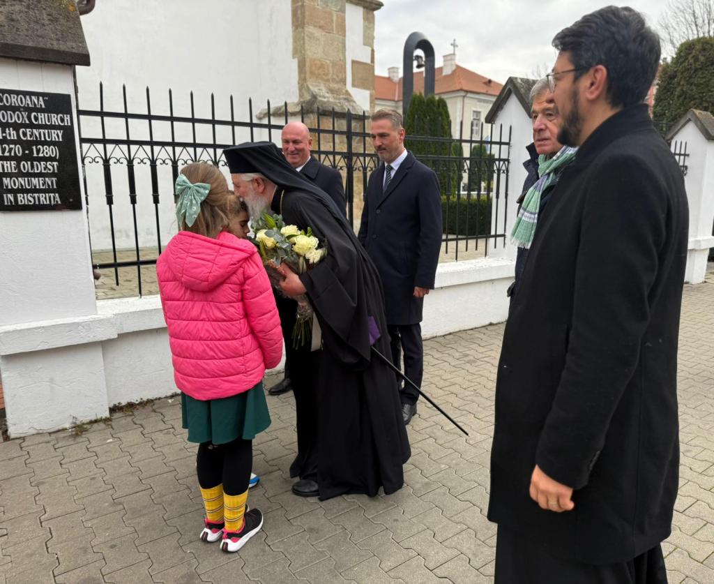 Programul zilei a început la ora 10:00, la Biserica de la Coroana, cu hramul „Intrarea în Biserică a Maicii Domnului”, unde ierarhul a fost întâmpinat de un sobor de preoți, în frunte cu părintele Marius Ioan Pintican, protopopul de Bistrița, și de autoritățile locale.
