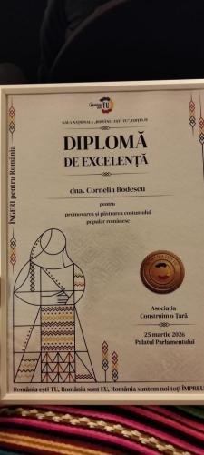 Vizibil emoționată, aceasta a mulțumit organizatorilor pentru distincție și a subliniat importanța transmiterii valorilor autentice din generație în generație. Cornelia Bodescu a declarat că vede munca sa ca pe o datorie față de patrimoniul cultural românesc.