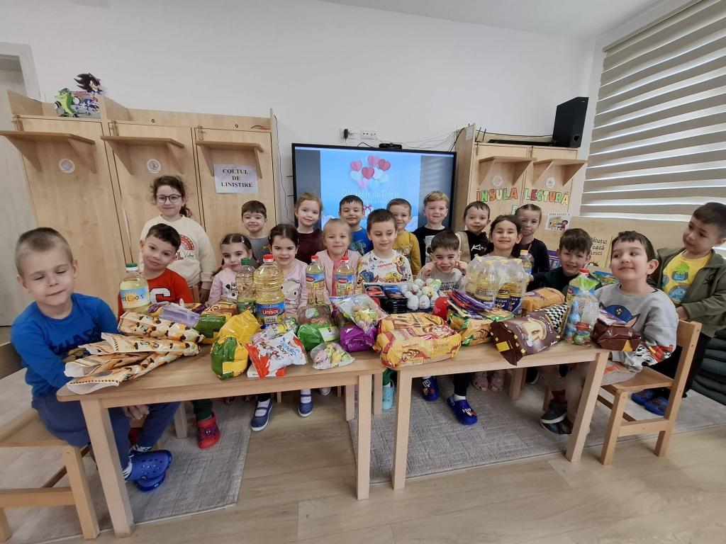 Cu ajutorul părinților, cei mici au împărtășit bucuria de a dărui prin pregătirea unor pachete cu alimente și dulciuri pentru copiii din medii vulnerabile și vârstnici aflați în dificultate.