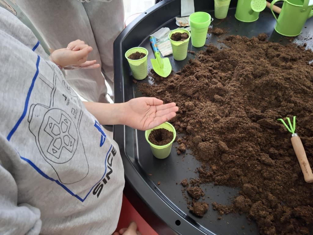 Copiii au fost implicați activ: au descoperit cum se seamănă roșiile, au pregătit pământul, au așezat semințele cu grijă și au învățat că plantele au nevoie de atenție și responsabilitate pentru a crește sănătoase. Curiozitatea lor s-a transformat rapid în entuziasm, iar fiecare mic „grădinar” a participat cu seriozitate la plantare.