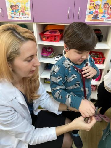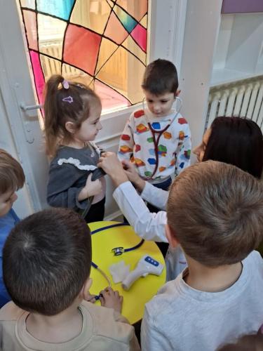 La final, cei mici au fost curioși, au adresat întrebări și au ascultat cu stetoscopul cum le bate inimioara. A fost o activitate interesantă și educativă, iar copiii au fost încântați să descopere cât de frumoasă și importantă este meseria de medic.