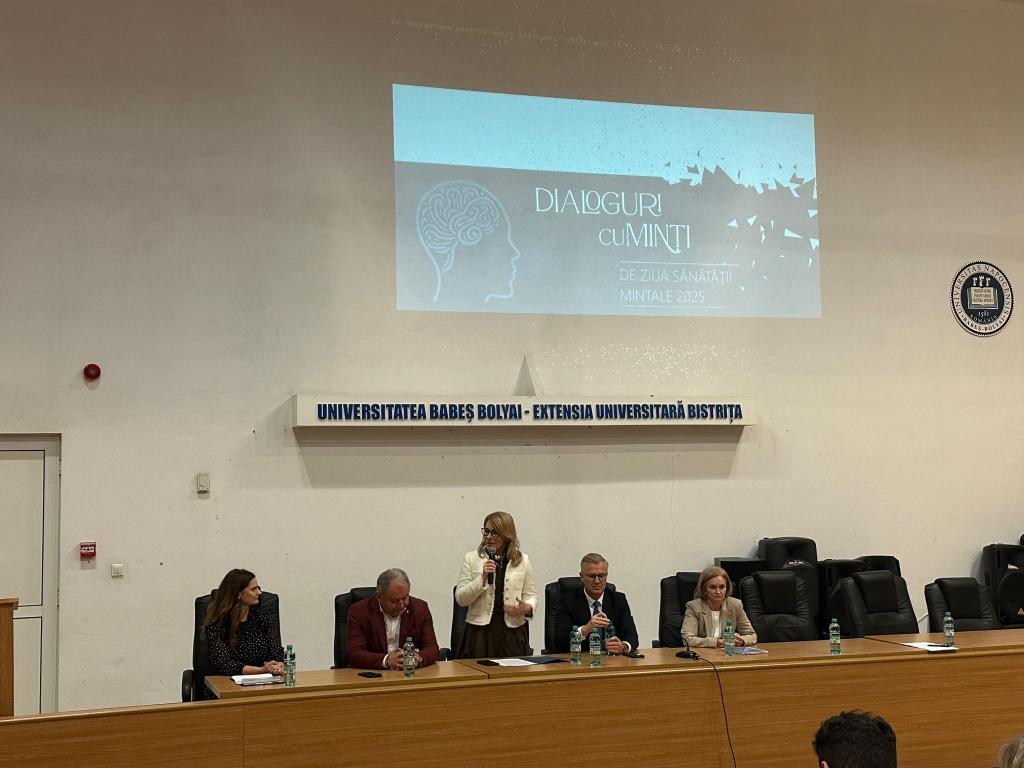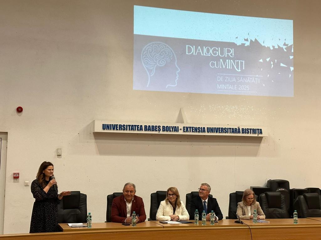 Aula Magna a Universității Babeș-Bolyai Extensia Bistrița a găzduit un eveniment dedicat sănătății mintale, unde specialiști din psihologie și psihiatrie au deschis dialoguri interdisciplinare despre echilibru, prevenție și sprijin pentru toate vârstele. Conferința “Dialoguri cuMINȚI” a fost organizat de Colegiul Psihologilor din România – Filiala Bistrița-Năsăud, în parteneriat cu Spitalul Clinic Județean de Urgență Bistrița – Secția Psihiatrie si Centrul de Sănătate Mintală și Prevenirea Adicțiilor, DGASPC BN, CJRAE, UBB Extensia Bistrița.