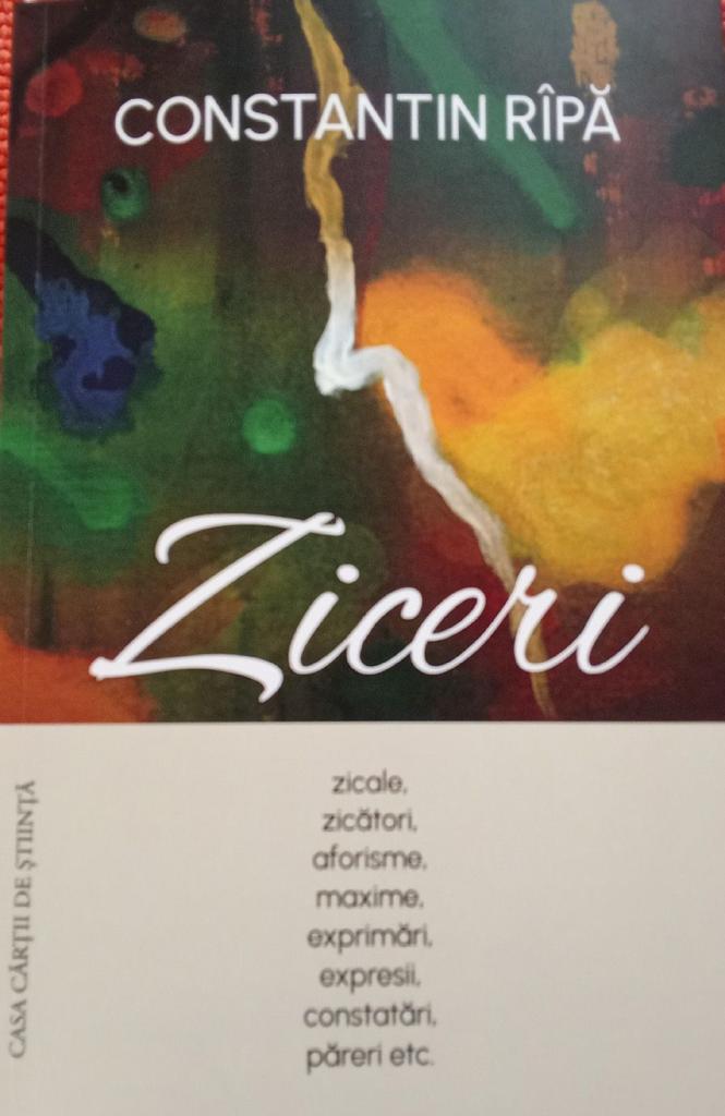 Iată că artistul complex care este Constantin Rîpă deschide o altă acoladă peste timp, într-o eșalonare diacronică a conținuturilor de idei, continuând notele sale într-un volum intitulat simplu Ziceri. Din precauție, autorul acestor însemnări se ferește să le numească aforisme, deși, în mare parte, structura acestor note este pronunțat aforistică, aphorismus = cugetare enunțată într-o formă concisă, memorabilă (DEX). În schimb, adaugă în paranteze un șir de sinonime și cvasi-sinonime spre a da coeziune determinativă necuprinselor gânduri întrupate în cuvântul scris: zicale, zicători, cugetări, maxime, minime, exprimări, expresii, constatări, păreri etc. Aș adăuga enumerării, înainte de etc., termenul stănescian respirări, întrucât de la modelul Nichita Stănescu își revendică, în mare măsură, sămânța lirică și Constantin Rîpă. Respirări, da, întrucât între inspirație și expirație sunt orânduite slovele dătătoare de sens și fior al gândirii.