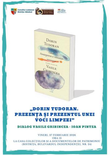 Vineri, 27 februarie 2026, ora 13, vom purta, la Casa Colecțiilor și a Documentelor de Patrimoniu (Bistrița, Bulevardul Independenței, nr. 24), un dialog cu Vasile Gribincea, realizatorul antologiei de poezie Dorin Tudoran: „Calea. Nemărginirea se reînnoiește", apărută la Editura Cartier.