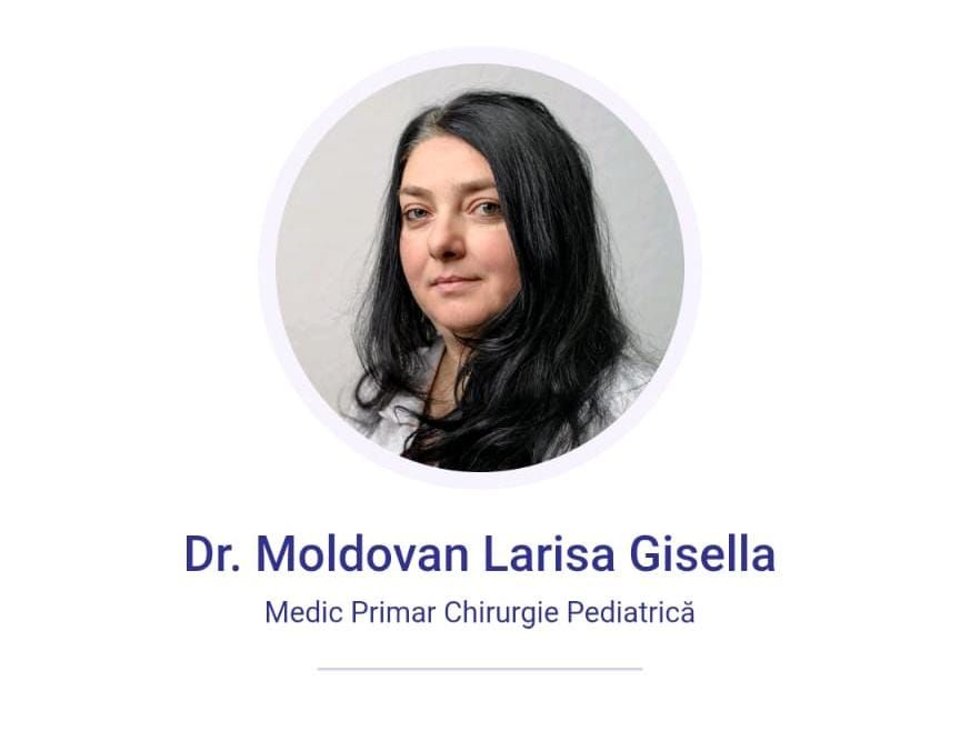 Dr. Larisa Gisella Moldovan – medic primar Chirurgie pediatrică - cu vastă experiență profesională, abordează fiecare caz cu răbdare, empatie și atenție deosebită față de micii pacienți și familiile acestora.