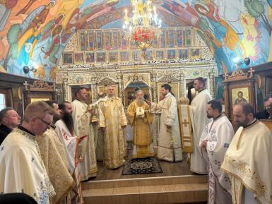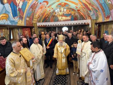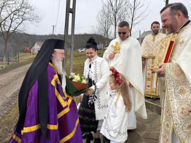 Cu acest prilej, Preasfinția Sa a săvârșit Sfânta și Dumnezeiasca Liturghie, a binecuvântat clopotnița bisericii și a sfințit noua capelă mortuară din localitate.