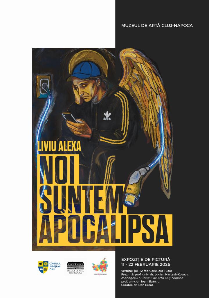 Muzeul de Artă Cluj-Napoca, instituție publică de interes județean care funcționează sub autoritatea Consiliului Județean Cluj, organizează, în perioada 11-22 februarie 2026, expoziția de pictură intitulată Noi suntem Apocalipsa, semnată de Liviu Alexa. Expoziția intră în circuitul de vizitare al muzeului începând de miercuri, 11 februarie, ora 10.00, astfel încât publicul are șansa de a se familiariza cu lucrările expuse încă din preziua vernisajului. Deschiderea oficială va avea loc joi, 12 februarie 2026, de la ora 18.00, în prezența prof. univ. dr. Lucian Nastasă-Kovács, managerul Muzeului de Artă Cluj-Napoca, a prof. univ. dr. Ioan Sbârciu, și a muzeografului dr. Dan Breaz, în calitate de curator al expoziției.