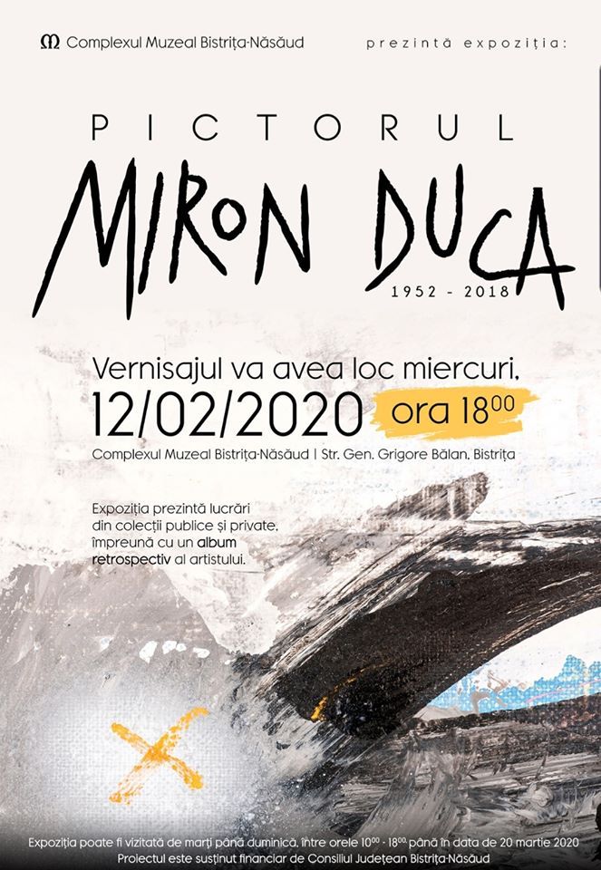 În seara zilei în care artistul ar fi împlinit 68 de ani, Complexul Muzeal Bistrița-Năsăud vă invită la un eveniment de excepție, expoziția retrospectivă ”Pictorul Miron Duca 1952-2018”.