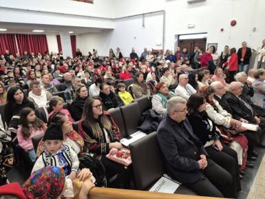 Toate formațiile celor șase localități s-au adunat la Școala Gimnazială, fiind primiți cu multă căldură de directorul Marius Găină și întregul său colectiv, de unde au ajuns la Căminul Cultural, într-o frumoasă paradă a portului popular.