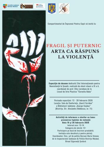 Compartimentul „Împrumut pentru Copii” vă invită la „FRAGIL ȘI PUTERNIC. ARTA CA RĂSPUNS LA VIOLENȚĂ”,