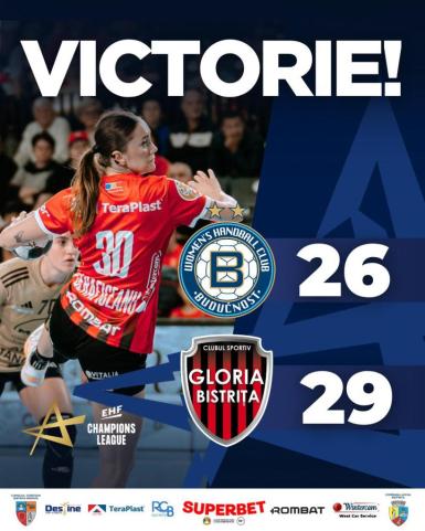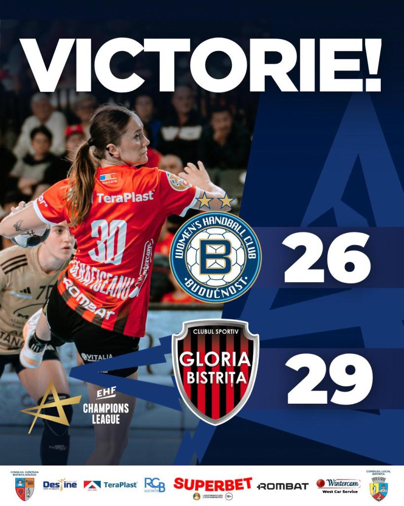 Gloria Bistrița a scris în această după-amiază istorie și în Muntenegru, după ce a învins, scor 26-29 (16-13), pe Budućnost., una dintre cele mai titrate echipe ale Europei. Echipa obține astfel al patrulea succes în grupele EHF Champions League și este pe locul 3, cu 8 puncte.