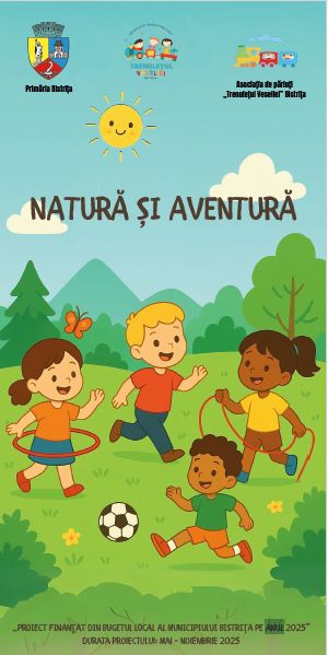 Grădinița cu Program Prelungit „Trenulețul Veseliei” Bistrița are plăcerea de a informa comunitatea cu privire la lansarea proiectului „Natură și aventură”, un proiect inovativ, realizat în parteneriat cu Asociația de Părinți „Trenulețul Veseliei”, care beneficiază de finanțare nerambursabilă din bugetul Consiliului Local al municipiului Bistrița pe anul 2025.