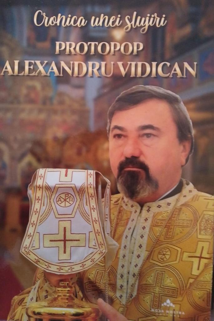 A apărut în a doua jumătate a acestui an lucrarea „Cronica unei slujiri”, dedicată protopopului Alexandru Vidican, la Editura ”Nosa Nostra” din Bistrița, purtând pe coperțile sale semnătura editorilor Tia Cristian-arhimandrit Teofil și Mircea Gelu Buta. Tipărirea unor astfel de cărți este prilejuită de cinstirea unei personalități cu o activitate remarcabilă într-un domeniu important și de aceea, apariția se constitue într-un eveniment cultural. Este și cazul protopopului ortodox al Bistriței, Alexandru Vidican, care a împlinit 70 de ani și, conform rânduielilor, s-a retras din activitatea administrative, întinsă pe 24 de ani.