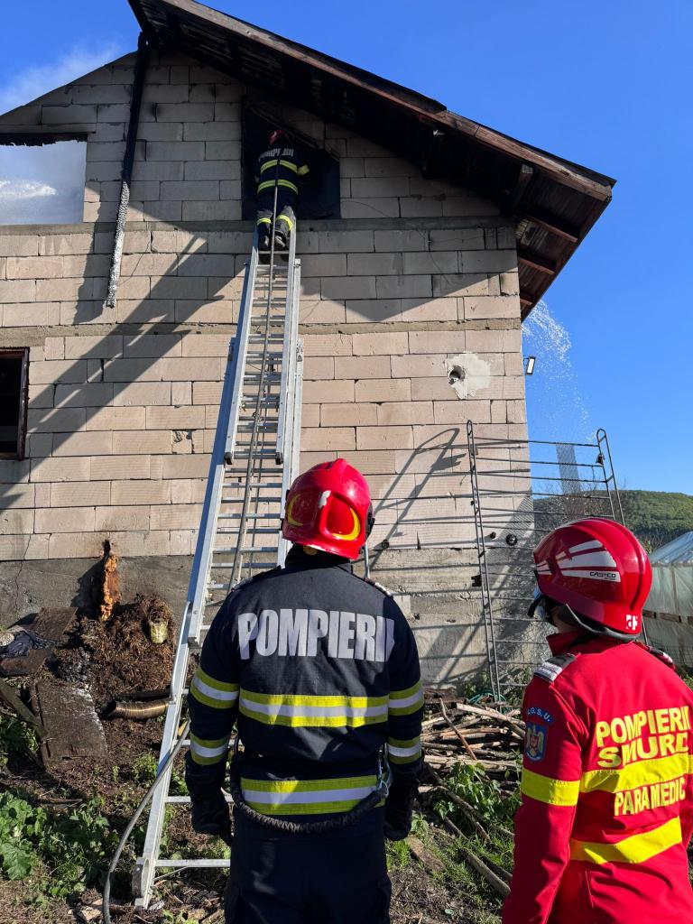 Pompierii militari au intervenit pentru stingerea unui incendiu izbucnit la o casă de locuit cu etaj în localitatea Crainimăt, comuna Șieu-Măgheruș.