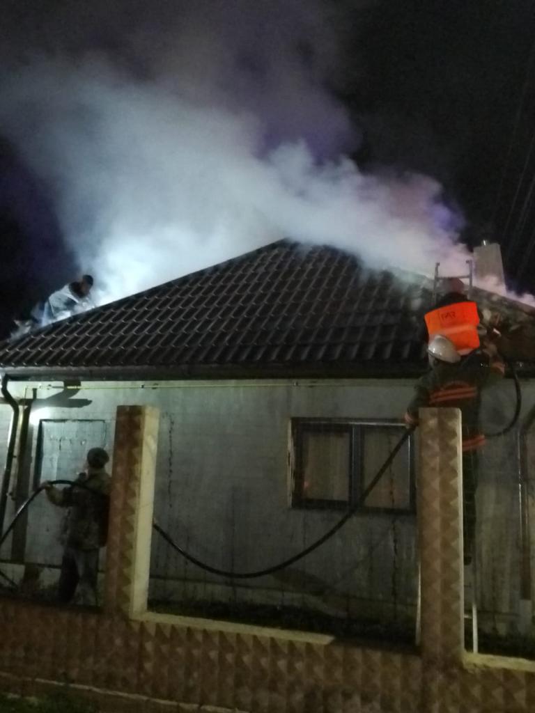 update: Incendiul a fost lichidat. Acesta se manifesta pe o suprafață de cca. 170 - 200 mp, acoperis si pod. Inclusiv camerele au fost afectate, din cauza faptului ca planseul era construit din lemn. Cauza probabilă a fost stabilită ca fiind un cos de fum necuratat. ISU Bistrița-Năsăud