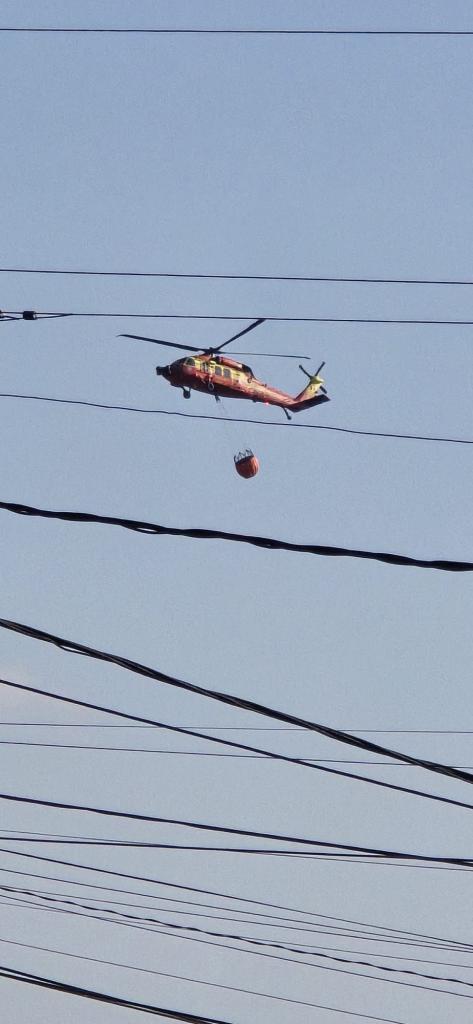 Misiunea forțelor de intervenție a fost sprijinită și din aer de un elicopter aparținând Inspectoratului General de Aviație al Ministerului Afacerilor Interne, echipat cu sistem de stingere tip Bambi Bucket, cu ajutorul căruia au fost realizate cinci transporturi de apă, alimentarea fiind efectuată de două ori din municipiul Bistrița și de trei ori din localitatea Rebrișoara.