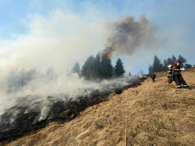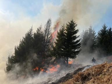 - Pompierii militari, voluntari și personal silvic intervin la un incendiu de pădure izbucnit la Parva