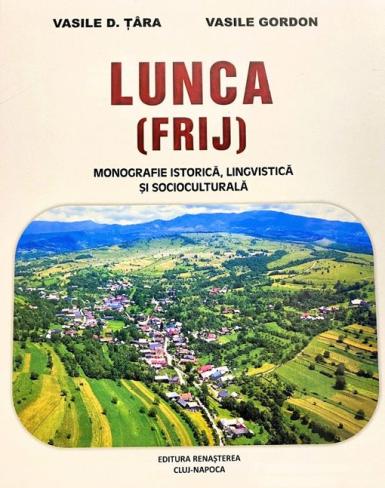 Lucrarea Lunca (Frij). Monografie istorică, lingvistică și socioculturală, apărută la Editura Renașterea, este deosebit de consistentă și valoroasă, scrisă cu mintea, dar și cu inima, de către doi autori distinși, profesori la universități de prestigiu din România: prof. univ. dr. Vasile D. Țâra (Universitatea de Vest din Timișoara, Facultatea de Litere, Istorie, Filosofie și Teologie) și preot prof. univ. dr. Vasile Gordon (Universitatea din București, Facultatea de Teologie Ortodoxă „Justinian Patriarhul”), ambii născuți în Frij – frumoasa așezare de la poalele Munților Călimani.