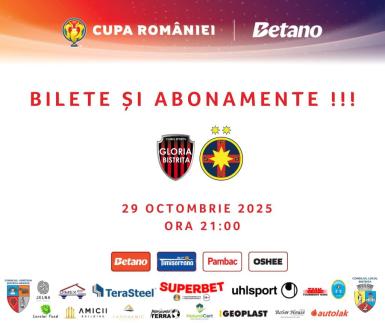 Joi-23 octombrie - se pun în vânzare biletele pentru partida Gloriei Bistrița cu FCSB!