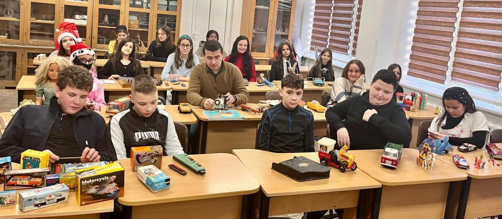 Vizitatorii, elevi de diverse vârste, de la cei din clasa pregătitoare până la cei de clasa a VIII-a, au putut admira, în toată splendoarea lor, „venerabilele” jucării: mașinuțe, autobuze, avioane, păpuși mari și mici, camioane, jucării cu mecanism și cu cheiță, un xilofon, o muzicuță, un pian, un clasor cu timbre vechi, un „Plugușor” din lemn, sculptat manual, motociclete, căruță cu cal și coviltir, un vapor cu vele etc.