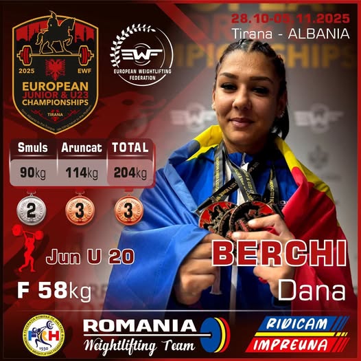 O medalie de argint, la stilul smuls, cu 90 Kg și două de bronz, la aruncat și la total cu 114 Kg si 204 Kg pentru Dana Berchi în competitia categoriei 58 Kg Juniori, la Europenele din Albania. Bronz continental de Juniori pentru Narcis Papolti, la totalul categoriei 60 Kg Juniori, cu 262 Kg. Tot medalie de bronz si la stilul smuls, unde sportivul nostru a reușit încercarea la 119 Kg, în timp ce, la stilul aruncat, a terminat pe locul 4, 143 Kg! Nicu Vîlcu a terminat pe locul 4, la total și la aruncat cu 323 Kg si 180 Kg, în timp ce, la stilul smuls, s-a clasat pe 5, cu 143 Kg.