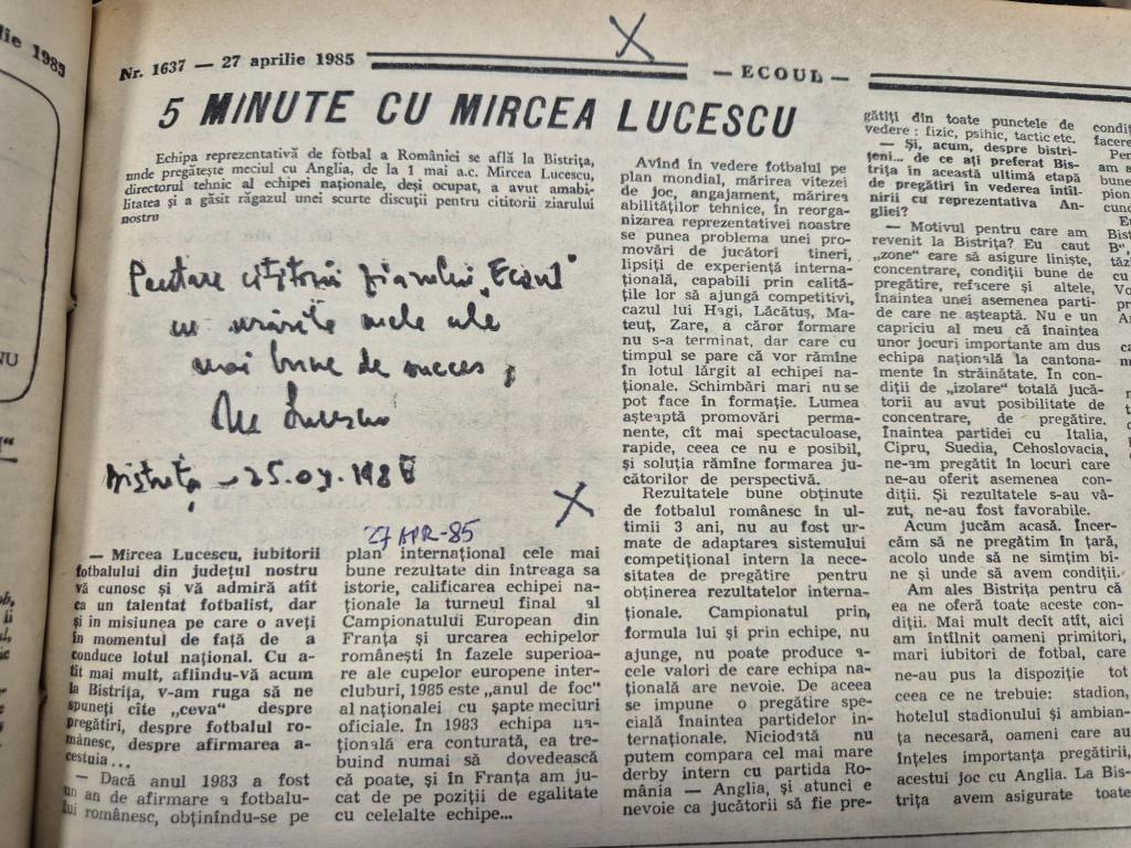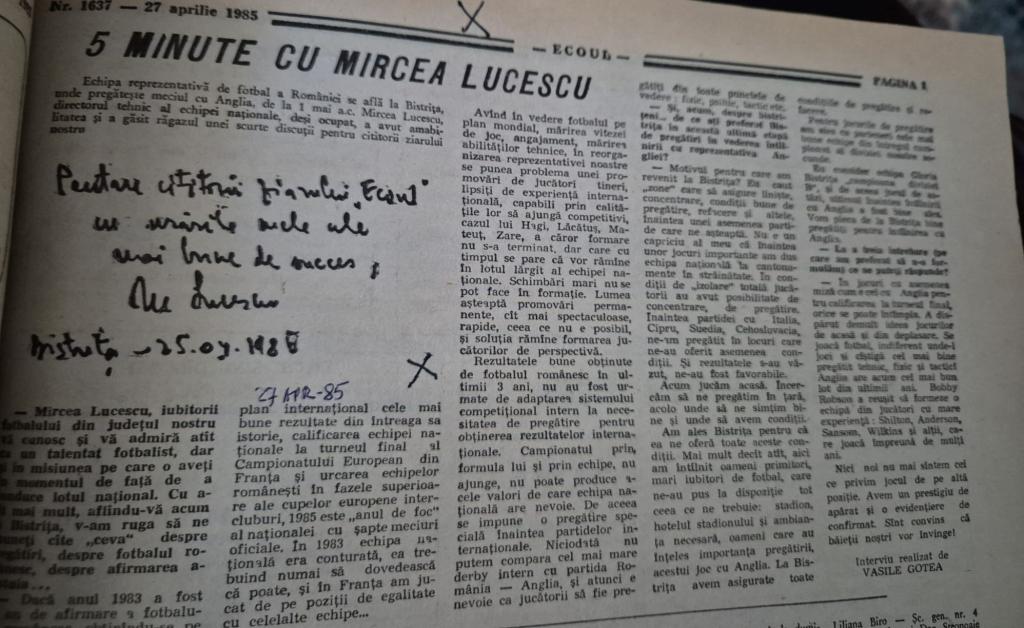Mircea Lucescu (1985, "Ecoul"): La Bistrița, am întâlnit oameni primitori, mari iubitori de fotbal