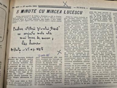 — Mircea Lucescu, iubitorii fotbalului din județul nostru vă cunosc și vă admiră atât ca talentat fotbalist, dar și în misiunea pe care o aveți în momentul de față de a conduce lotul național. Cu atât mai mult, aflându-vă acum la Bistrița, v-am ruga să ne spuneți câteva „ceva” despre fotbalul românesc, despre afirmarea acestuia...