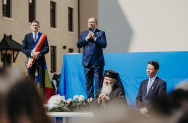 'Sper că resimțiți cu toții această bucurie, de a avea o casă nouă, dar în același timp pot să vă spun că este foarte important să simțiți bucuria de a învăța, să simțiți această șansă unică pe care o avem de a fi educați de profesori speciali, de a trăi într-o țară în care, chiar dacă nivelul de dezvoltare, bogăția nu este atât de mare, pregătește încă foarte bine acești elevi. (...) Aș dori să îi felicit pe profesorii dumneavoastră și să îi aplaud pentru ceea ce fac. Chiar dacă perioada este una dificilă, cred că ne aducem aminte cu toții, dragi profesori, prin ce perioade am trecut noi, cum învățam la lumânare, cum învățam în clase foarte friguroase și nerenovate, și, cu toate astea, bucuria de a învăța, înțelegerea acestei misiuni pe care dumneavoastră o aveți și pe care părinții o au în a-și educa copiii ne-au condus la rezultate foarte bune', a spus ministrul.