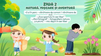 Ziua de marți a fost dedicată mișcării și explorării naturii, sub genericul „Natură, mișcare și aventură”. Copiii au participat la jocuri în aer liber, activități de tip vânătoare de comori, momente de picnic și observații ale naturii în cadrul activității „Micii fotografi”. Prin aceste experiențe, preșcolarii au fost încurajați să petreacă timp în aer liber, să observe frumusețea mediului înconjurător și să învețe prin joacă și cooperare.