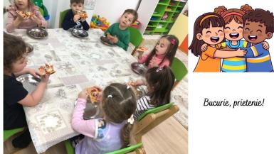 Ultima zi a săptămânii, vineri, 3 aprilie, a purtat numele sugestiv „Bucurie, gust și prietenie” și a adus un final plin de energie pozitivă. Copiii au pregătit delicii culinare ( clătite, pizza… ) au degustat prăjituri la cofetăria din cartiet, au dansat, s-au jucat și s-au bucurat de momente speciale alături de colegi și cadre didactice.