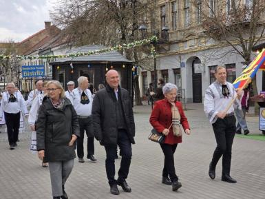 Târgul de Paşti-Ostermarkt a debutat cu parada portului popular pe Pietonalul “Liviu Rebreanu”, binecuvântarea ecumenică şi deschiderea oficială a Târgului de Paşti la Palatul culturii Bistriţa, urmată de un spectacol artistic.
