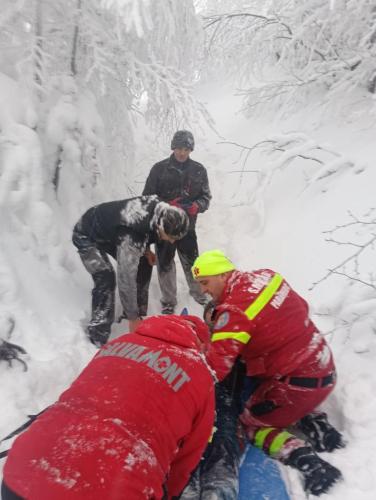 Serviciul Public Județean Salvamont Bistrița-Năsăud a intervenit cu un echipaj specializat în tehnici de căutare și salvare montană, participând activ la acțiunea de coborâre și evacuare a victimei din zona greu accesibilă.