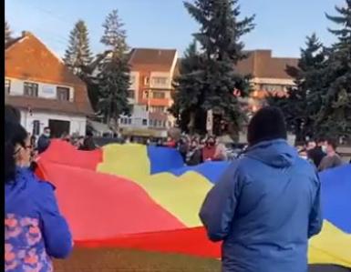 Oamenii au adus un steag mare, pancarte cu mesajele "Opriți dictaturta sanitară!" sau "Binele impus se cheamă abuz", au strigat lozinci împotriva guvernanților.