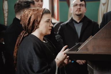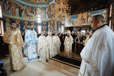 Răspunsurile liturgice au fost date de Grupul vocal „Theotokos” din Cluj-Napoca. La chinonic, tânăra Mădălina Oltean a interpretat pricesne.