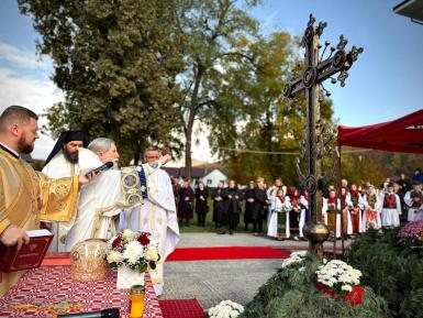 După Sfânta Liturghie, Preasfinția Sa a săvârșit slujba de sfințire a crucii care urmează să fie amplasată pe clopotnița mănăstirii, ca semn de binecuvântare și ocrotire asupra întregului așezământ monahal.