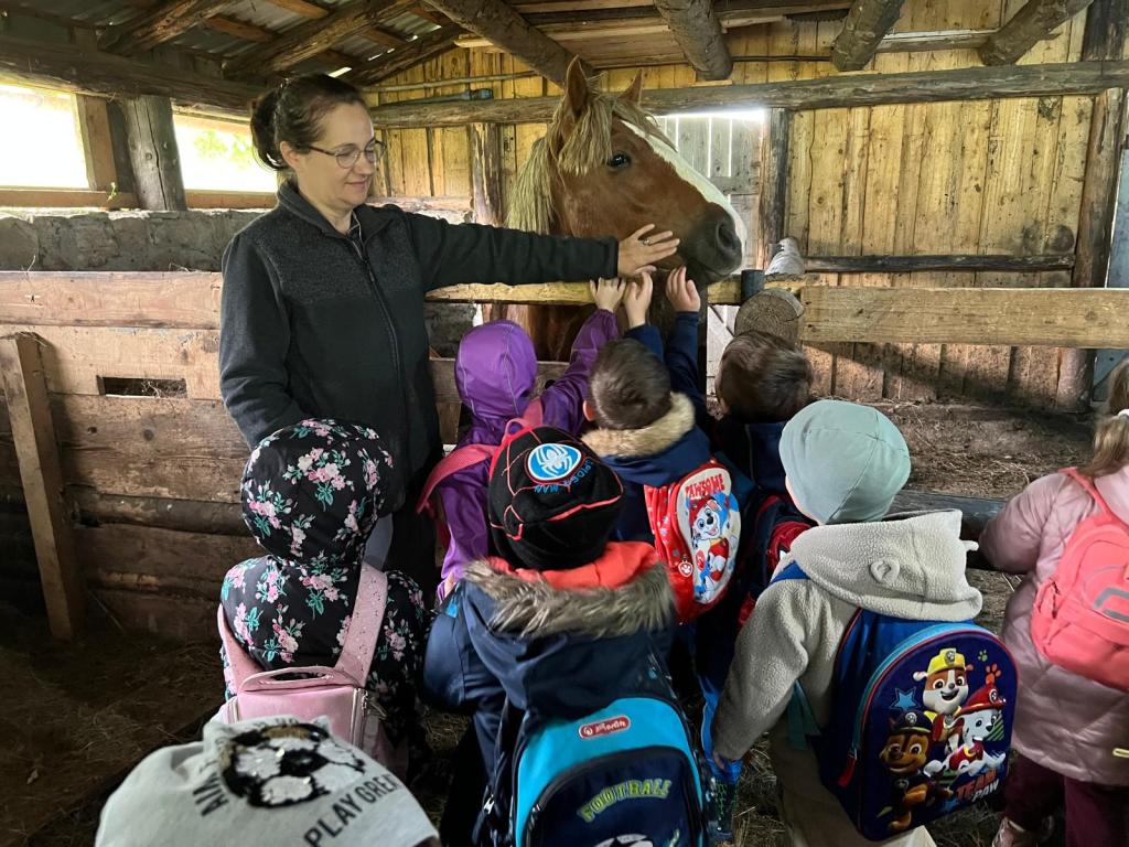 Într-un loc unde natura te face să uiți noțiunea timpului, copiii au avut ocazia să se plimbe, să respire aer curat, să observe cai, măgăruși, ponei, oițe. Micuții le-au mângâiat cu blândețe, le-au hrănit și au învățat cum trebuie îngrijite cu responsabilitate. A fost un moment de apropiere autentică față de lumea vie, care le-a stârnit curiozitatea și afecțiunea pentru toate ființele.