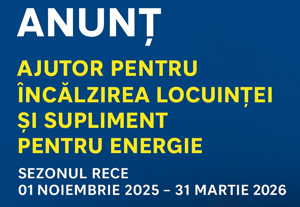 Primăria municipiului Bistrița, prin Direcția de Asistență Socială, începe din data de 03.11.2025, sesiunea de primire a documentației pentru acordarea ajutorului la încălzirea locuinței/ suplimentului de energie.